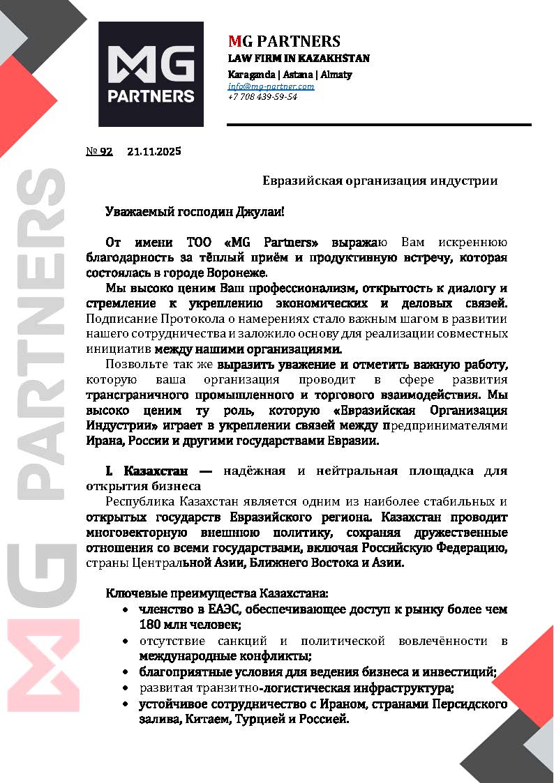 - Благодарственное письмо от MG PARTNERS